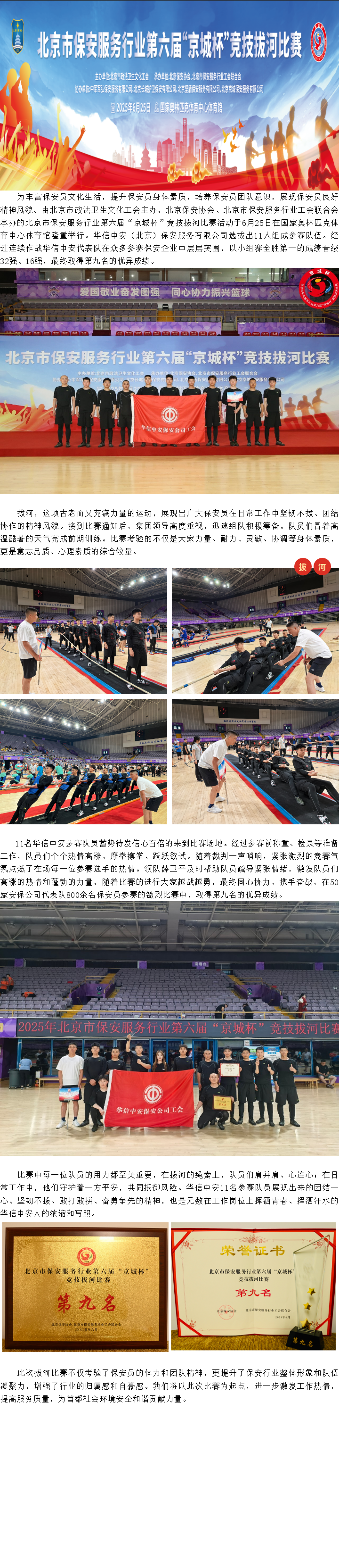 华信中安(北京)保安服务有限公司在北京市保安服务行业第六届“京城杯”拔河比赛活动中取得优异成绩