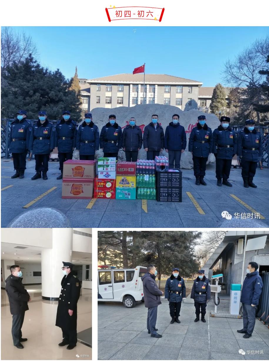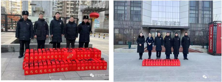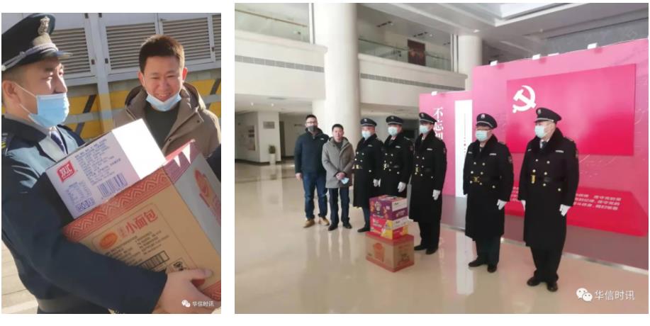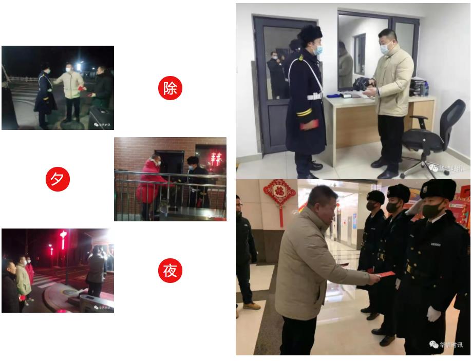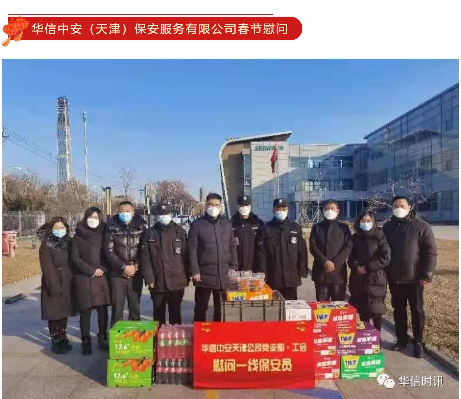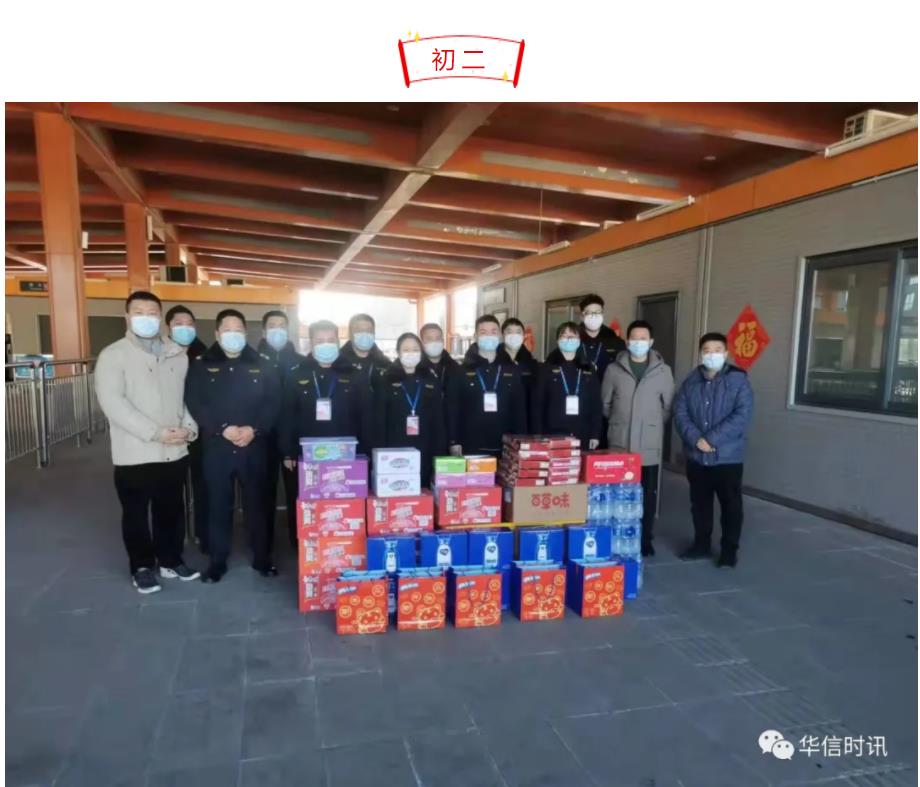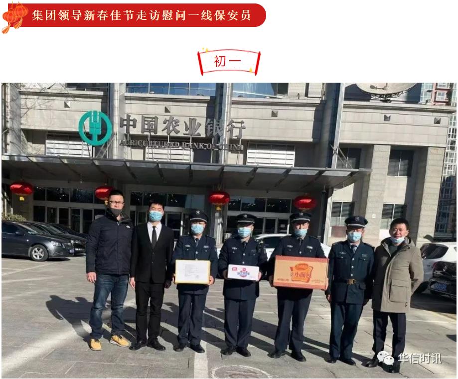 爆竹声中一岁除,春风送暖入屠苏。除夕夜刚刚过去,有人和亲人相拥守岁,有人与朋友欢聚一堂。大年初一,当大多数人还沉浸在团聚的幸福、跨年的喜悦中时,华信中安的保安员们依然默默坚守在各自的岗位上,春节这样的日子对于他们来说,跟平常没有什么区别。这个时代一直在变,但我们保安人坚守岗位的信念始终不变;我们的生活一直在变,集团领导对一线保安员的牵挂与关怀也一直未变。大年初一早,集团党委书记、智能科技发展与运营中心总监林永强来到了中际北视华夏基金驻勤点、国电集团、中国农业银行农行公主坟驻勤点、国电集团接待中心、丰台科技大厦、国电科技环保集团股份有限公司等项目驻勤保安队进行走访慰问。"过年好,给大家拜年了,你们辛苦了"来到保安员队伍中,林永强书记首先代表公司党委向坚守在一线的全体保安员致以节日问候和新春祝福,对他们的辛勤劳动表示感谢。特别嘱咐相关负责人要安排好春节期间值守保安员的生活,并提醒值班队员在春节期间,要扎实做好安全工作,落细落实安全保障各项措施。