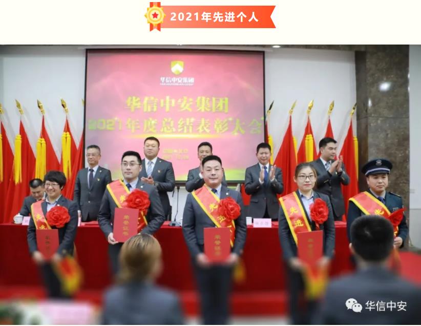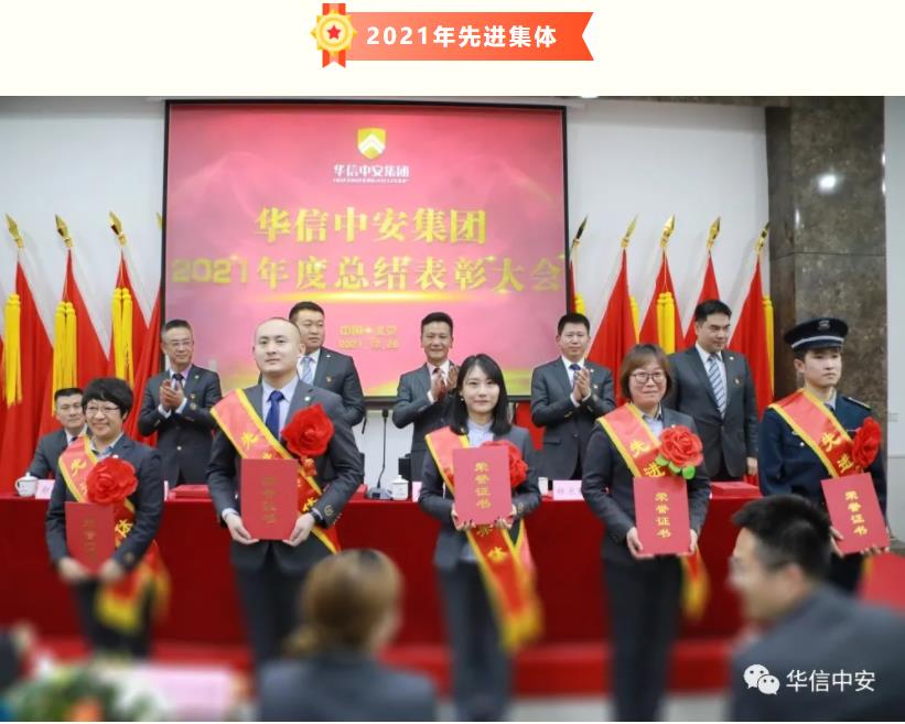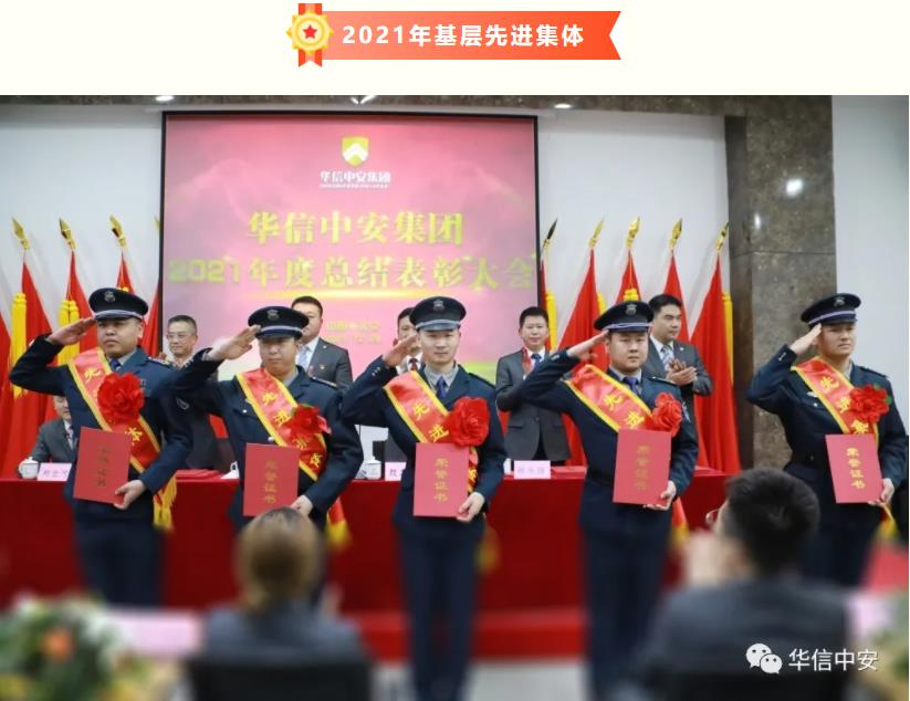 2021年全国分支机构先进集体:天津子公司、广东子公司、第五分公司、第九分公司、河南分公司、管理十四部、管理二十二部、管理三十一部、华信中安埃及办事处、华信中安(兰卡)国际公司、华信中安(辽宁)保安服务有限公司、广西华信中安保安服务有限公司。