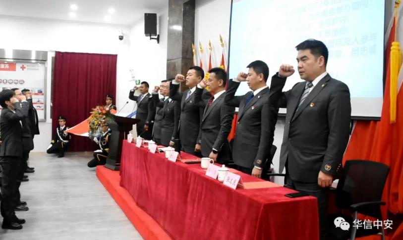 当前,2022年北京冬奥会安保已经进入全面实战状态,办好冬奥是国家的一件大事,事关国家利益和民族荣誉。而安全,是成事之基!"平安冬奥"是举办一届"精彩、非凡、卓越"冬奥会的前提,也是冬奥会圆满成功的重要标志。华信中安把确保冬奥安保工作万无一失,坚决维护冬奥期间驻勤单位的安全稳定作为当前工作的重中之重,以对党和人民高度负责的态度,坚决打赢冬奥安保这场硬仗。总结大会上,礼兵护卫着华信中安司旗在主席台旁驻步、展旗。全体参会人员在华信中安(北京)保安服务有限公司副总经理李贤宝的带领下,面向司旗庄严宣誓:"我志愿做2022年北京地区冬奥会安保卫士,在冬奥会举办期间,严守纪律、恪尽职守,不负重托、不辱使命;一起面向未来,迎接国际友人参与冬奥,与"集团"共荣耀,用忠诚捍卫冬奥会安保平安。"