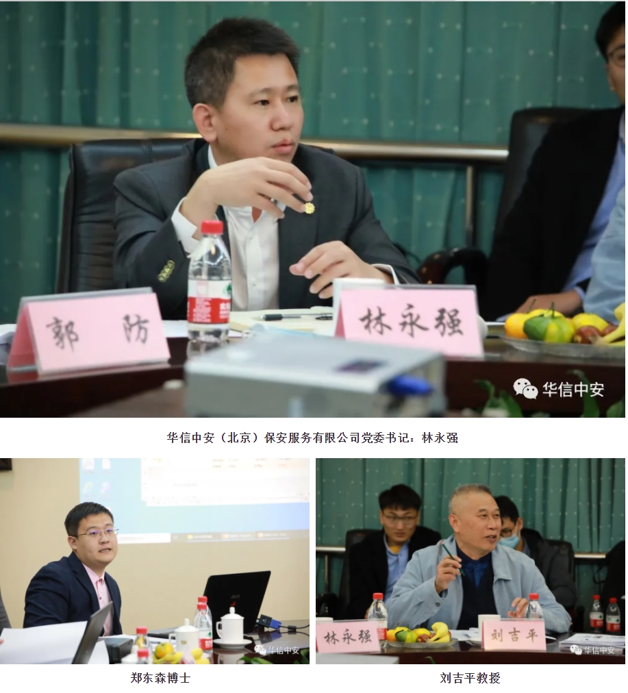 殷卫宏董事长在发言中表示:"2017年3月,为解决安保服务中快速安检的技术难题,华信中安与北京理工大学达成了战略合作协议,共同研发"手持便携式成像安检仪"。经刘吉平教授及项目组成员的潜心研究及技术攻关,产品经过了多地市公安机关的实战检验,效果良好,并通过了公安部警用装备检测中心的检测。今天刘院士及各位专家对"手持便携式成像安检仪"进行技术评审,将对安检仪的技术改进及市场应用产生重大而积极的影响,恳请各位专家多提宝贵意见。"