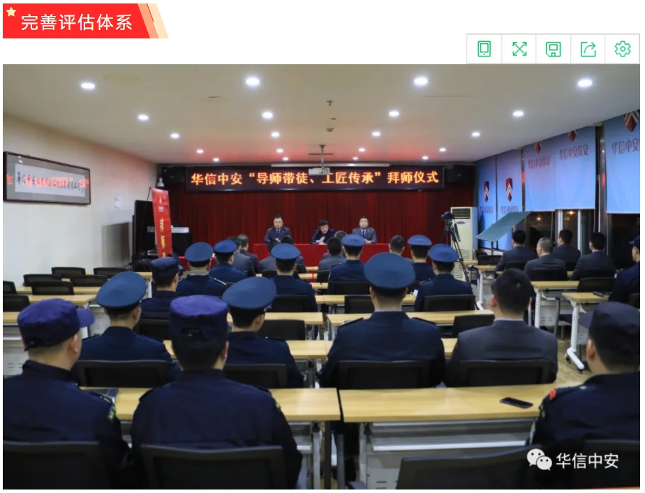 "导师带徒 工匠传承"管理制度的有效推行,需要多方面的支持,尤其是企业管理者将其上升到企业战略层面进行顶层设计,建立完善的制度予以长期贯彻执行。leyu·乐鱼(中国)体育-官方网站"导师带徒 工匠传承"管理制度推行之初,就在具体实施方案中明确规定了选师范围、选徒范围、带徒周期、师傅竞选程序、师徒责任、出徒标准等具体细则。并随着此项管理制度的深入推行对管理实施方案进行了逐步修改和完善,在方案中进一步明确了师傅和徒弟的责任与权利,学徒出徒的各项要求和出徒的标准。在导师筛选过程中,严格按照个人申请、基层单位推荐、保安管理部审核、品控中心复核、开展任前培训、保安运营管理中心考核等选拔程序挑选专业素质优秀、品格过硬的优秀保安员代表作为师父,使每一位师傅都能树立一面旗帜,不仅在保安业务技能上对徒弟言传身教,还能通过自己的匠心来影响徒弟。