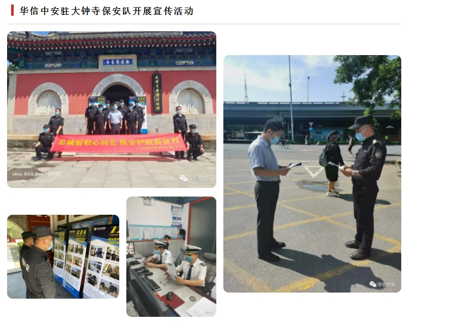 忠诚履职心向党、保安护航新征程——华信中安开展2021年全国保安服务行业主题宣传日系列活动