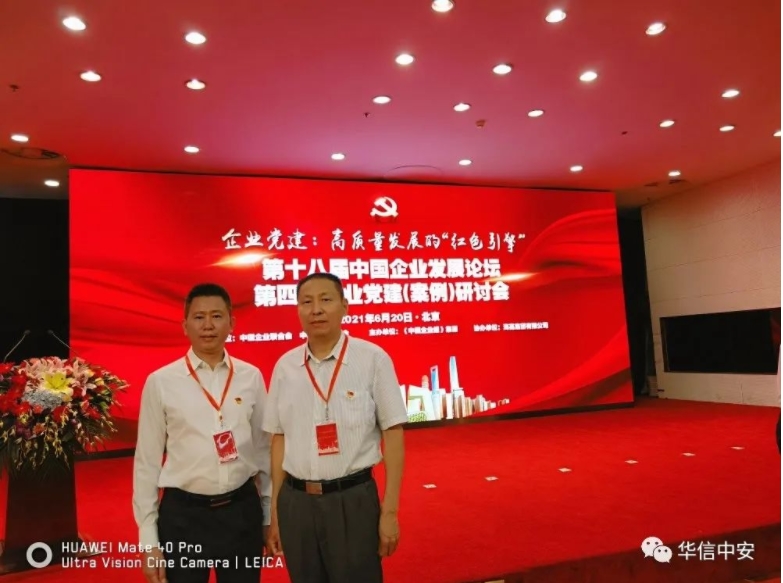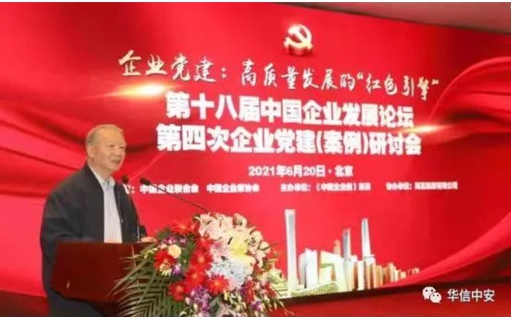 2021年6月20日,第十八届中国企业发展论坛暨第四次企业党建(案例)研讨会在北京万寿宾馆举行,来自全国的200家企业党组织负责人参加了会议,华信中安党委书记林永强、专职副书记高福聚应邀出席。