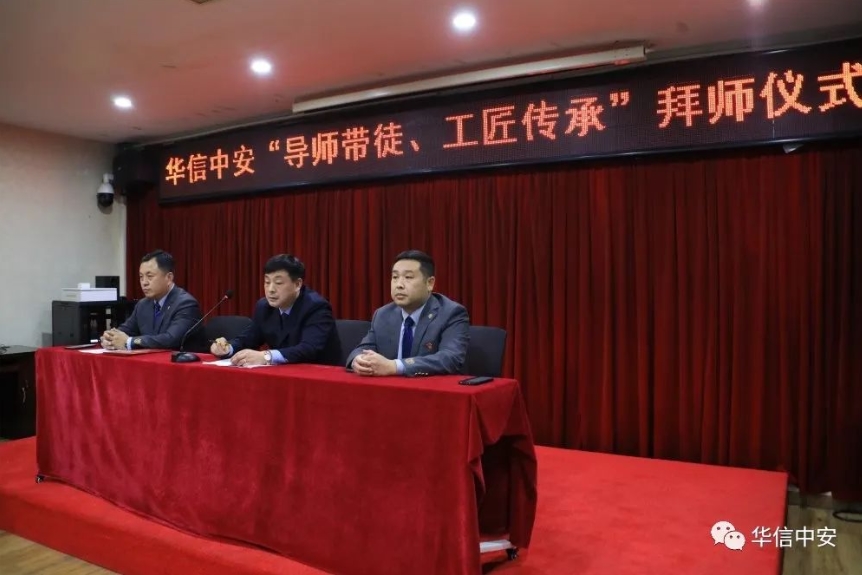 拜师仪式上,师傅们向徒弟承诺:"将我所学、尽我所能,毫无保留,传授给你,希望你好好学习,早日出徒,成为华信中安不可缺少的一员"徒弟也向师傅保证:"虚心求教,努力把所学技能落实到工作、生活中" 。今后,一对对师徒将在工作生活中互勉共进,结伴同行。