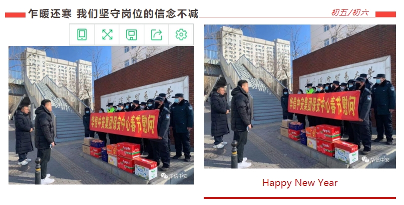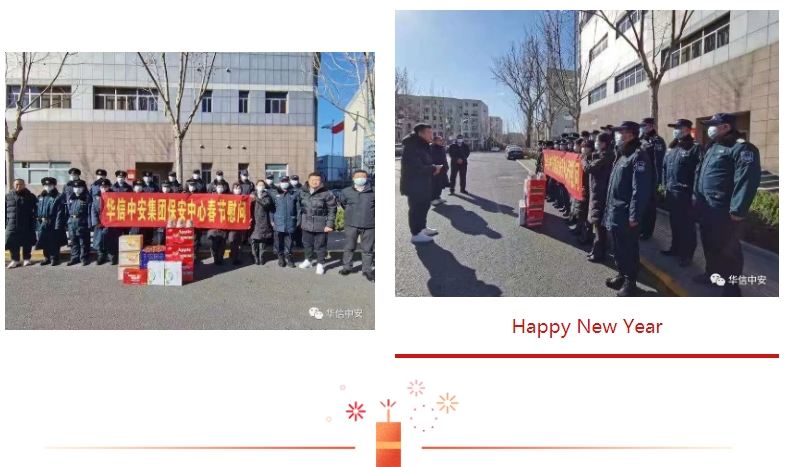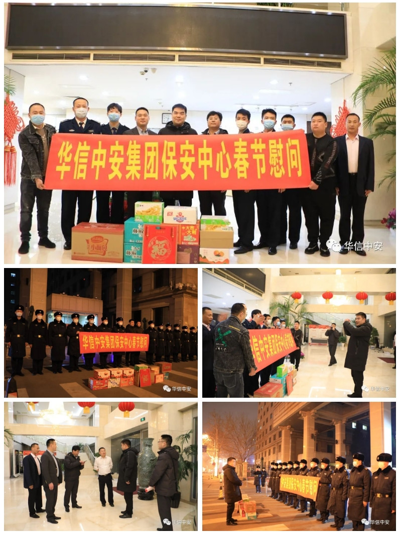 贴春联,挂福字,看春晚,中国人的春节是大年三十晚上一顿热乎的年夜饭,是游子的归乡父母的期盼,阖家团圆过大年是每个中国人的心愿。但每逢年节,都是保安员最忙碌的时候,年复一年,他们忙碌在工作岗位上把中国人最重视的传统节日过成了无数个简单又平凡的工作日。守护平安是他们的使命,坚守岗位是他们的职责。他们巡逻在寒风中、坚守在岗位上,忠诚履职、无私奉献,用一丝不苟的工作态度和默默奉献的服务精神实现了一家不圆万家圆的心愿,用坚实的臂膀托起千家万户的平安年。为感谢一线保安员的付出与坚守,受集团董事长委托,从2月11日农历大年三十到2月17日大年初七,集团领导陆续走进基层驻勤项目,看望慰问各项目坚守岗位的保安队员,为他们送上新春礼品和节日的问候。