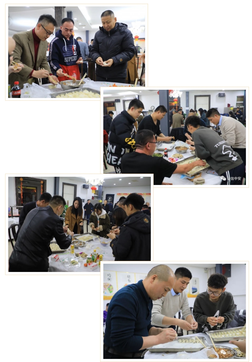 又是一年除夕夜,万家灯火团圆时,每逢年三十开展送温暖慰问活动,集团领导与队员一起煮饺子、话家常,已经成为了华信中安的的一项惯例。2月11日,辛丑年除夕,华信中安保安运营管理中心管理一部教导员李磊与管理三部教导员贾天宾按计划走访了科工局、农总行展览路、华夏基金、国电集团、冠华大厦、北丰中心等项目。项目驻勤地内外都洋溢着一派喜庆的节日气氛,执勤岗位上的队员们坚守岗位,工作秩序井井有条,据了解,在除夕晚上,保安队员们一起吃一顿丰盛的年夜大餐,是不少项目的传统,队员们放弃了回家过年,春节期间坚守在岗位上,队里也多为他们考虑,让他们在队里也能感受到过年的氛围,感受到家的温暖。