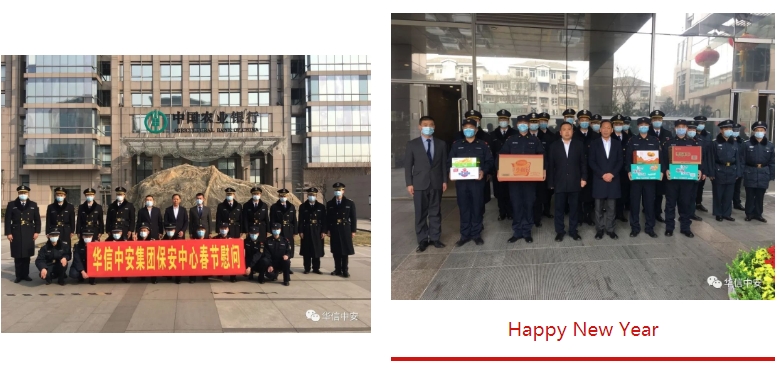 爆竹声中一岁除,春风送暖入屠苏。除夕夜刚刚过去,有人和亲人相拥守岁,有人与朋友欢聚一堂。当大多数人还沉浸在大年初一团聚的幸福、跨年的喜悦中时,华信中安的保安员们依然默默坚守在各自的岗位上,春节这样的日子对于他们来说,跟平常没有什么区别。而这些队员们也是让公司领导时刻牵挂的亲人,带着这份关心,大年初一一大早早,华信中安保安运营管理中心管理一部教导员李磊陪同安全风险评估中心总监李先喜来到农行北楼、农行南楼、农银人寿(东单)、农银理财、农行光耀东方五个项目进行走访慰问。"过年好,给大家拜年了,你们辛苦了",来到安保人员队伍中,李先喜首先代表公司领导班子向坚守在一线的全体保安员致以节日问候和新春祝福,对他们的辛勤劳动表示感谢。特别嘱咐相关负责人要安排好春节期间值守安保人员的生活,让大家感受到家的温暖和浓浓的节日气氛,并提醒值班人员在春节期间,要扎实做好安全工作,落细落实安全保障各项措施。