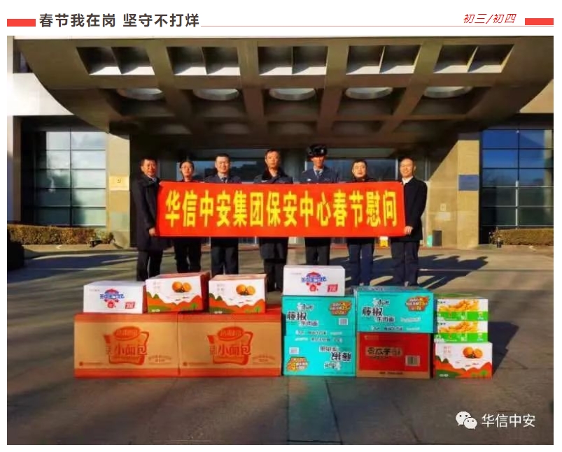 大年初二是传统"回娘家"的日子,而在华信中安保安队伍中,仍然有不少坚守在在轨道交通、机场、公交系统的安检女队员在坚守岗位。对于她们而言坚守在安检岗位就是守护春运的安全,坚守安保工作就是守护万家团圆。随着走亲访友增多,初二也迎来了春节假期出行高峰。华信中安保安运营管理中心管理一部教导员李磊与管理三部教导员贾天宾陪同计划财务管理中心总监石红走访慰问了中国电建、国电科环等项目,并转达了公司集团董事长对员工的关心与问候。此外,品质控制管理中心总监保蕊、市场营销发展与管理中心总监石小迎及保安运营管理中心政委郑金河也分别走访慰问了国电集团、大钟寺、万寿寺、外经贸大学、朝阳疾控中心、北方工业大学等驻勤项目,向用"坚守"和"奉献"撑起节日和谐平安的一线保安员致以节日的问候!深情的问候,温暖的话语,也鼓励着每位坚守岗位的保安队员。大家纷纷表示将继续坚守岗位,恪尽职守,用更加饱满的热情服务好客户,充分展示华信中安品牌形象,为公司新年度新发展贡献力量。