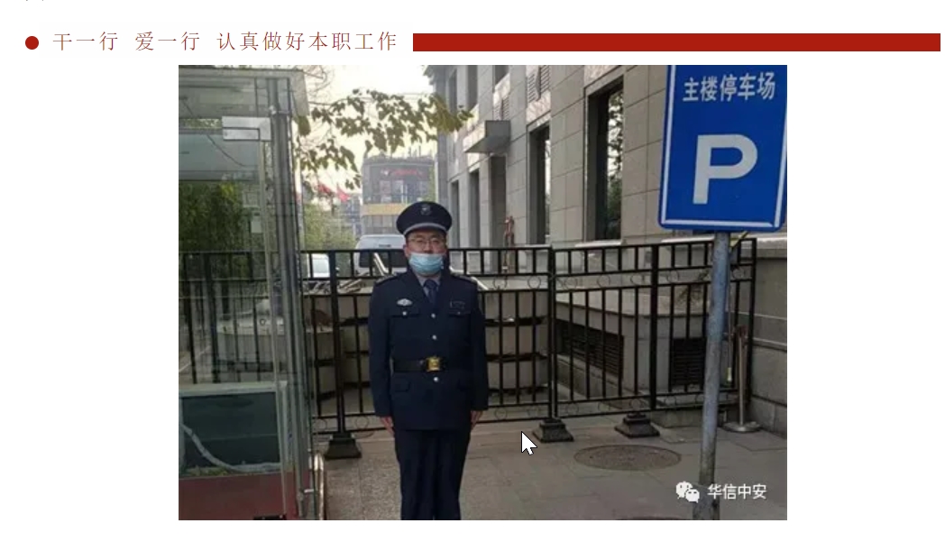 优秀保安员标兵——华信中安驻朝阳区政府项目保安员王宗宗