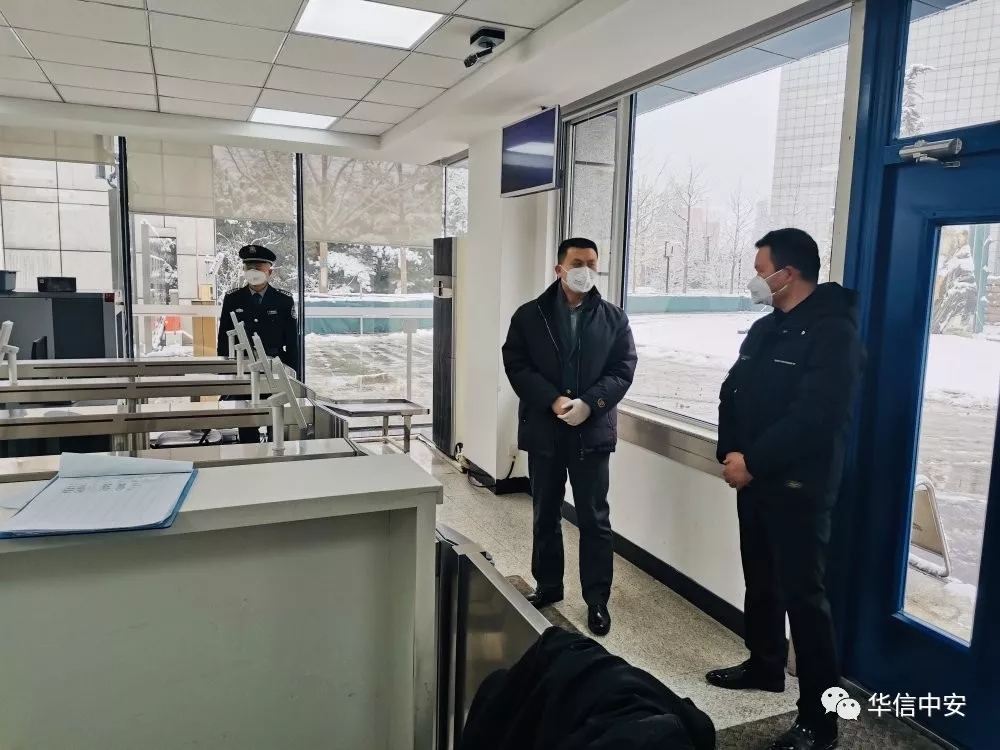 集团"防控新型冠状病毒工作领导小组"成立后,领导小组副组长:华信中安(北京)保安服务有限公司总经理、华信中安保安运营管理中心总监邢鹏即刻做出工作部署,要求保安管理部门主管立刻停止休假进入工作岗位:一要靠前指挥,检查指导勤务和防疫工作;二要与甲方积极沟通,明确并全面掌握各单位下一步具体要求,做好相关工作计划;三要持续开展各类数据统计上报;四要详细了解各项目口罩、消毒用具的配发使用情况,做好保障工作;五要下一线指导帮建,树立基层信心。在公司统筹部署安排下,公司保安管理部门主管领导先后来到机场、高校、地铁、公交等防疫重点项目,慰问一线保安员同时了解防疫期间队员工作生活上的困难,帮助一线队员解决特殊时期工作生活中的实际困难。