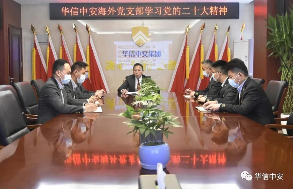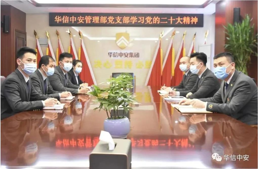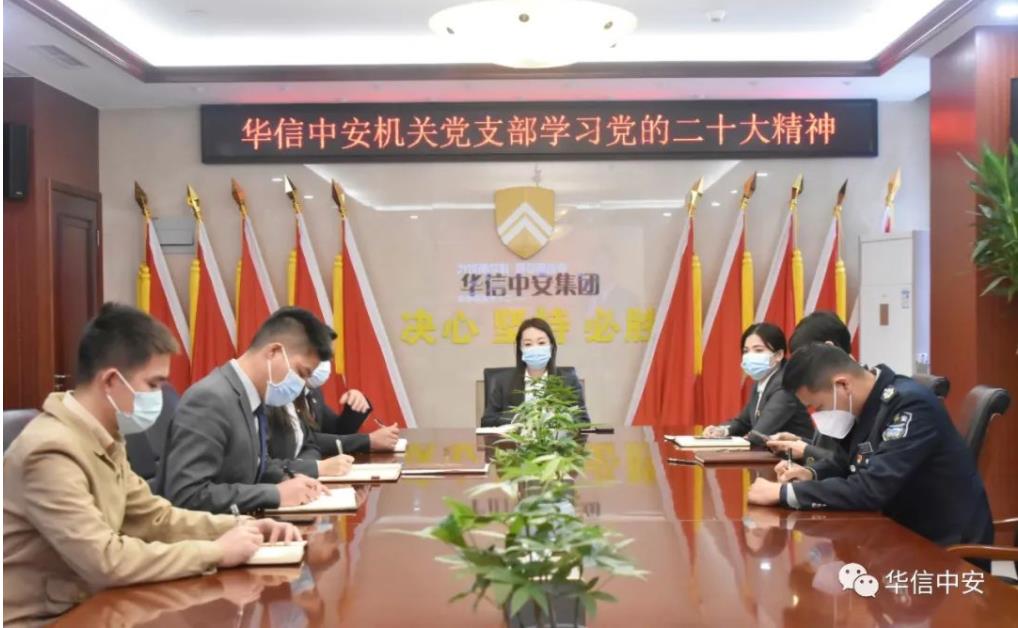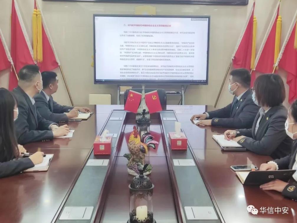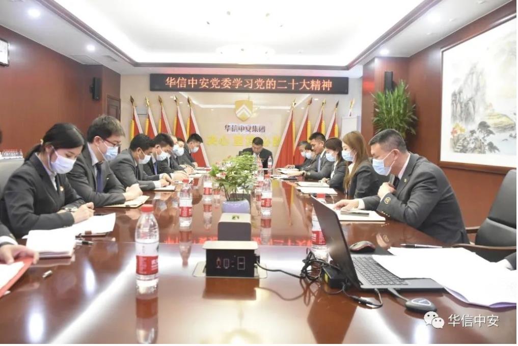10月28日,华信中安党委组织召开集中学习研讨会,集团党委书记邢鹏主持此次会议并作学习动员,党委宣传委员李先喜开展专题宣讲,集团党委班子成员围绕学习内容作主题发言。