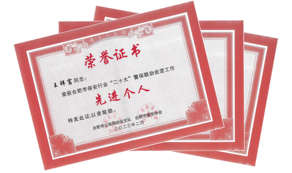分公司员工3位同志荣获合肥市保安行业“二十大”警保联动巡逻工作先进个人;